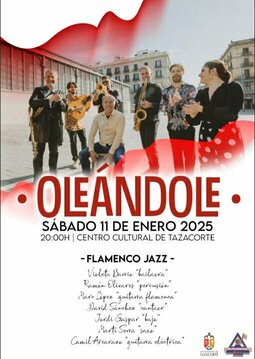 Oleándole es un colectivo que asocia dos estilos de música de raíces profundas: el jazz y el flamenco. En este espectáculo, el cante y el baile flamencos dialogan con la improvisación jazzística, bebiendo cada uno a la fuente del otro en una simbiosis poderosa y creativa. También es el encuentro de algunos de los y las mejores artistas de jazz y de flamenco de Barcelona. Estos artistas con solvencia contrastada y de larga trayectoria, con proyectos personales, acuden a Oleandole para ensanchar sus registros, atraídos por esta aventura de música libre y gratificante. Oleándole, además de sus composiciones originales, adapta a los ritmos flamencos standards de jazz, música de películas, canciones soul y pop, alternándolas con el cante y el baile de puro flamenco, creando una “fisión” de géneros original, virtuosa y jubilosa.