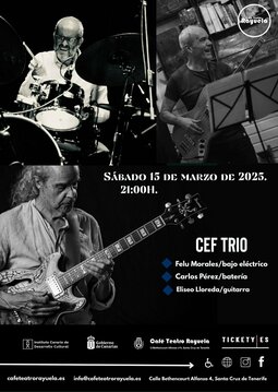 El trío “CEF” se formó en 2020 en Tenerife, uniendo a tres músicos con trayectorias distintas pero complementarias en busca de una propuesta fresca y moderna dentro del jazz. El nombre “CEF” proviene de las iniciales de sus miembros: Carlos (batería), Eliseo (guitarra) y Felu (bajo eléctrico ). Tras varios encuentros en jam sessions locales, los tres lograron una conexión musical inmediata, lo que los llevó a consolidarse como trío y comenzar a trabajar en su propio sonido.